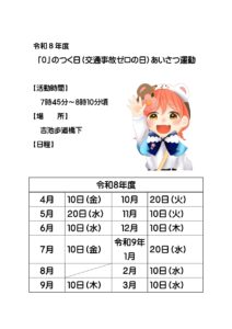 令和8年度 “0”のつく日(交通事故ゼロの日)あいさつ運動 日程のご案内